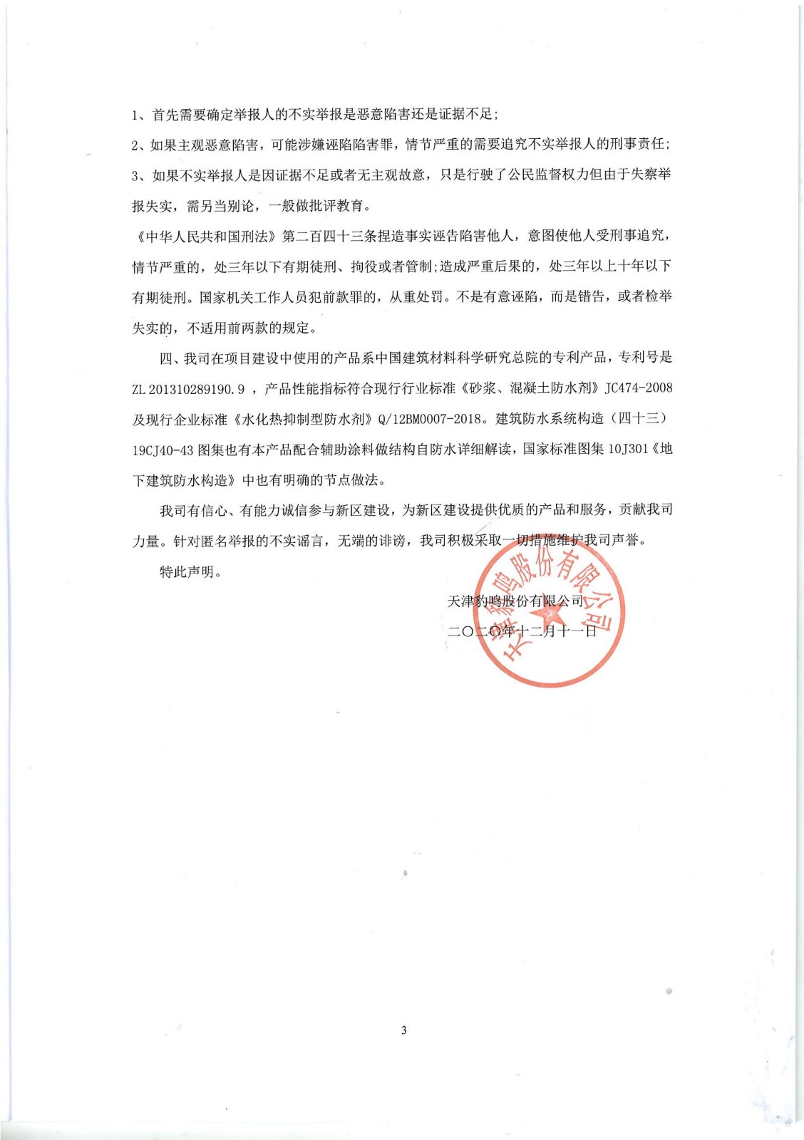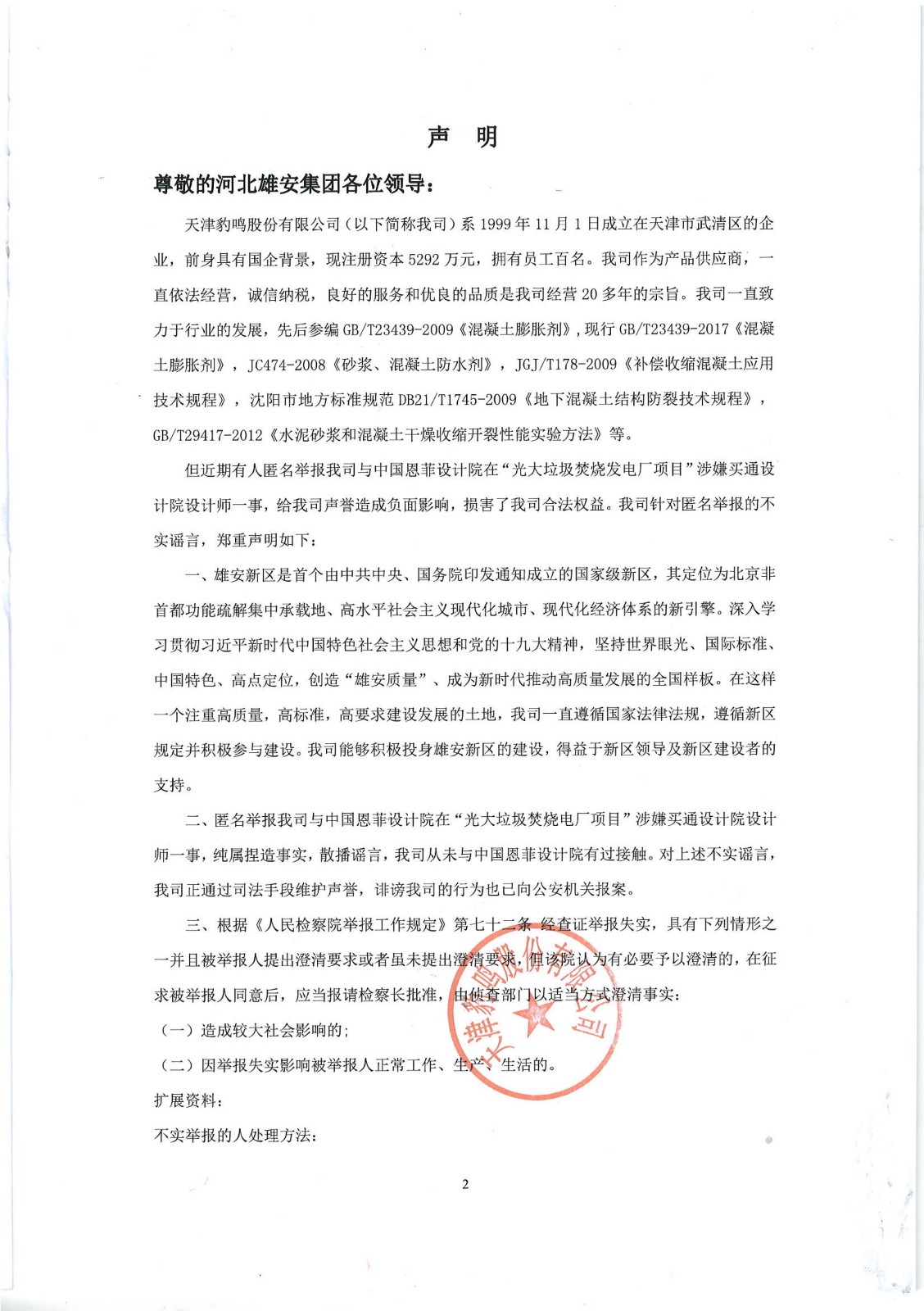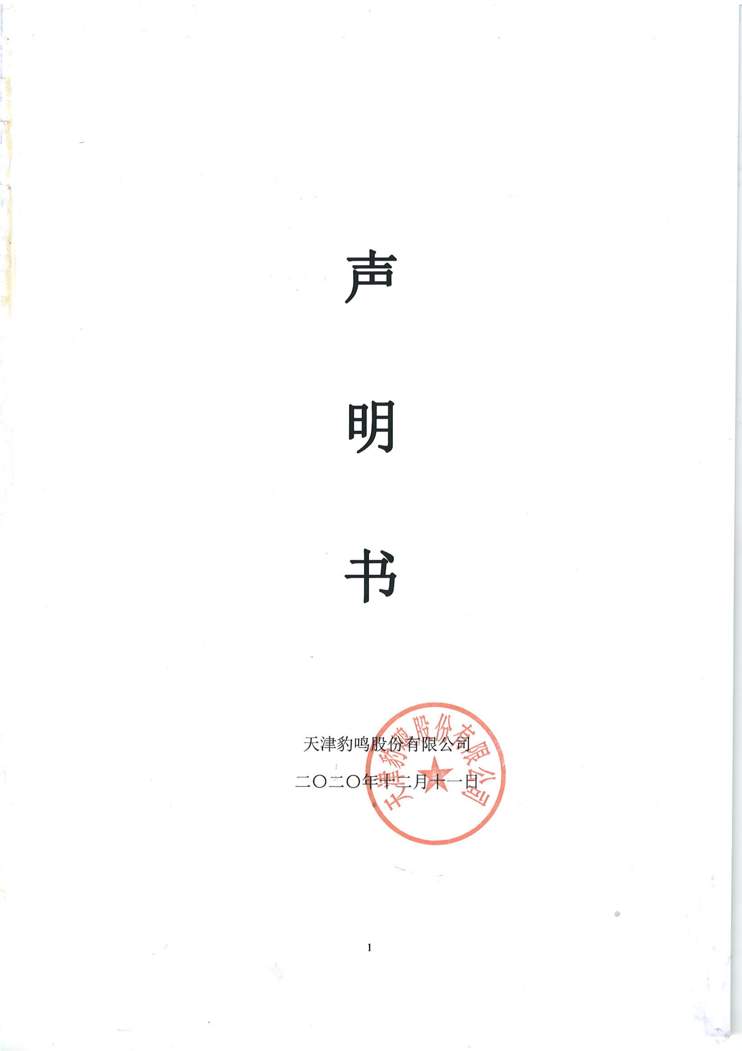 天津豹鳴股份有限公司聲明書